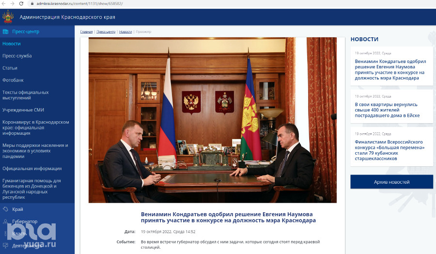 «Уверен, что справитесь с новыми вызовами». Кондратьев одобрил Наумова. Администрация назвала имена всех кандидатов на должность мэра Краснодара
